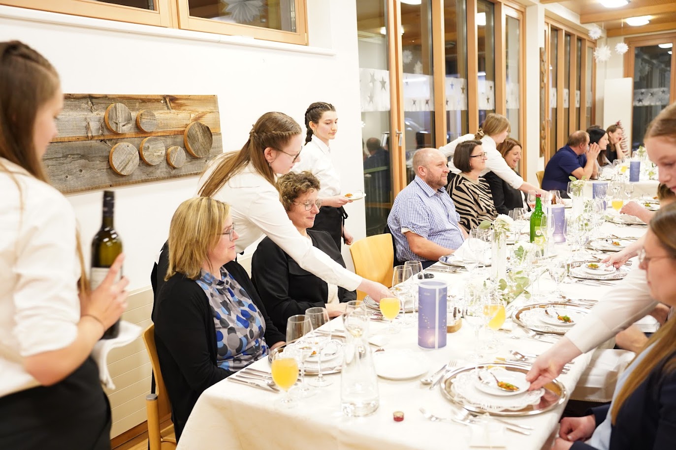 In Küche und Service zeigten sie großes Engagement, Teamarbeit und Fachkompetenz. Vom sorgfältig geplanten Menü über die Zubereitung der Speisen bis hin zum freundlichen und aufmerksamen Service für die Eltern – alles lag in den Händen der Schülerinnen. Die Gäste wurden in einer entspannten und angenehmen Atmosphäre bewirtet. Ein tolles Menü, liebevoll angerichtet, sowie schön gedeckte Tische sorgten für einen rundum gelungenen Abend. Die ruhige Stimmung und der professionelle Ablauf machten deutlich, wie viel Erfahrung und Sicherheit die Schülerinnen im Laufe ihrer Ausbildung gewonnen haben.