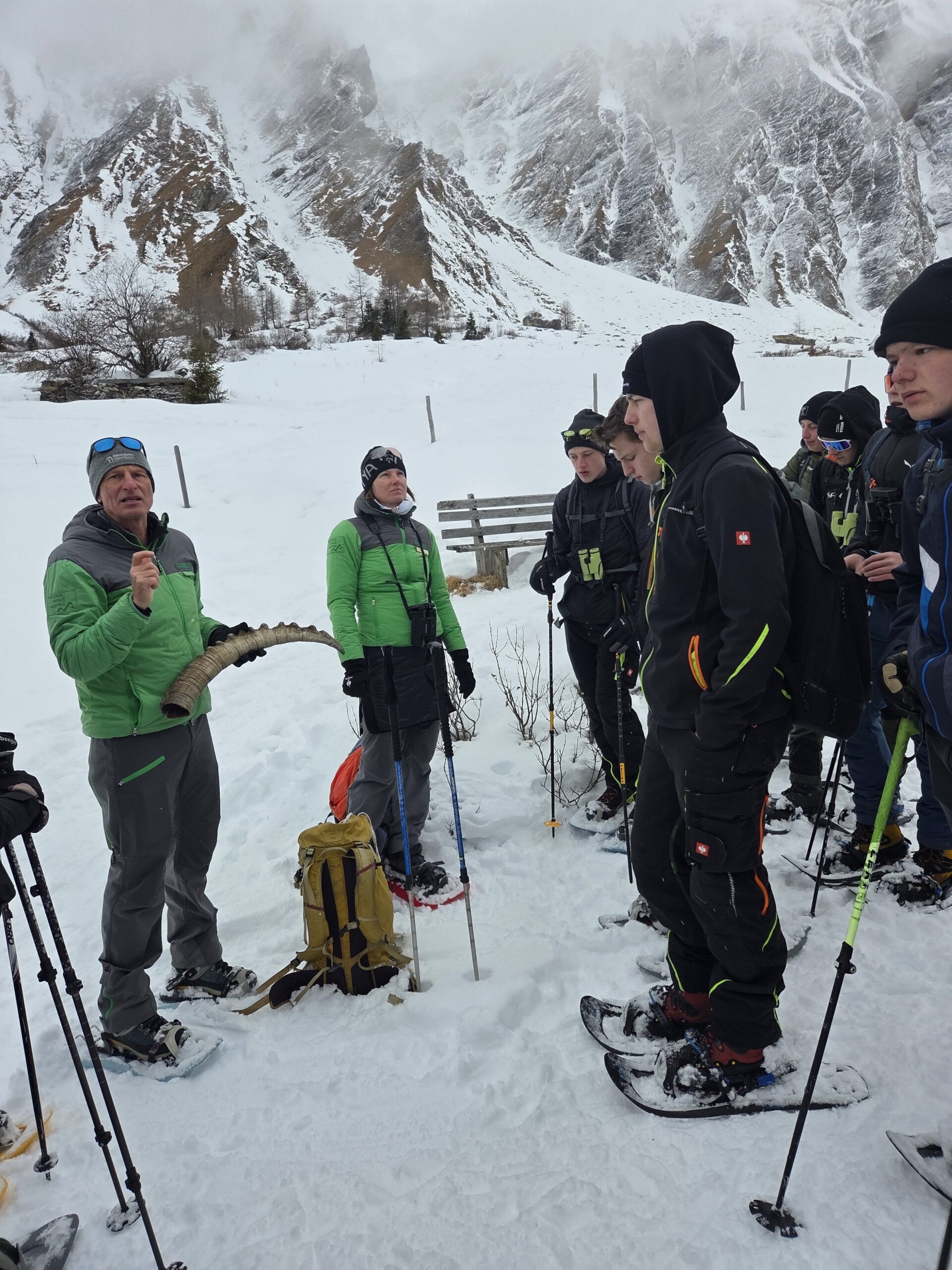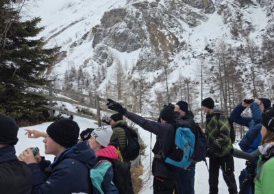 Unsere Wildtierbeobachtung im Nationalpark Hohe Tauern bei Kals am Großglockner war ein besonderes Erlebnis. In Begleitung mehrerer Nationalpark-Ranger machten wir uns mit Schneeschuhen auf den Weg durch die verschneite Winterlandschaft. Die Ruhe der Natur und die beeindruckende Bergkulisse machten die Wanderung von Anfang an sehr eindrucksvoll.