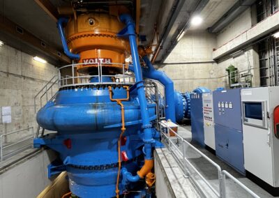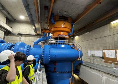 Anschließend ging es weiter zum Kraftwerk Verbund Malta-Reißeck in Kolbnitz. Dieses zählt zu den größten Wasserkraftwerken Österreichs und spielt eine zentrale Rolle in der Stromversorgung. Die Schüler:innen erfuhren, dass pro Sekunde bis zu 20 m³ Wasser zur Stromerzeugung genutzt oder bis zu 16 m³ Wasser gepumpt werden können. Die Wasserkraft ist besonders wichtig, um Bedarfsspitzen im Stromnetz auszugleichen. Interessant war auch das ausgeklügelte System mit zwei Hochdruckleitungen, die jeweils über zwei Rohre verfügen, um einen Ausfall abzusichern.