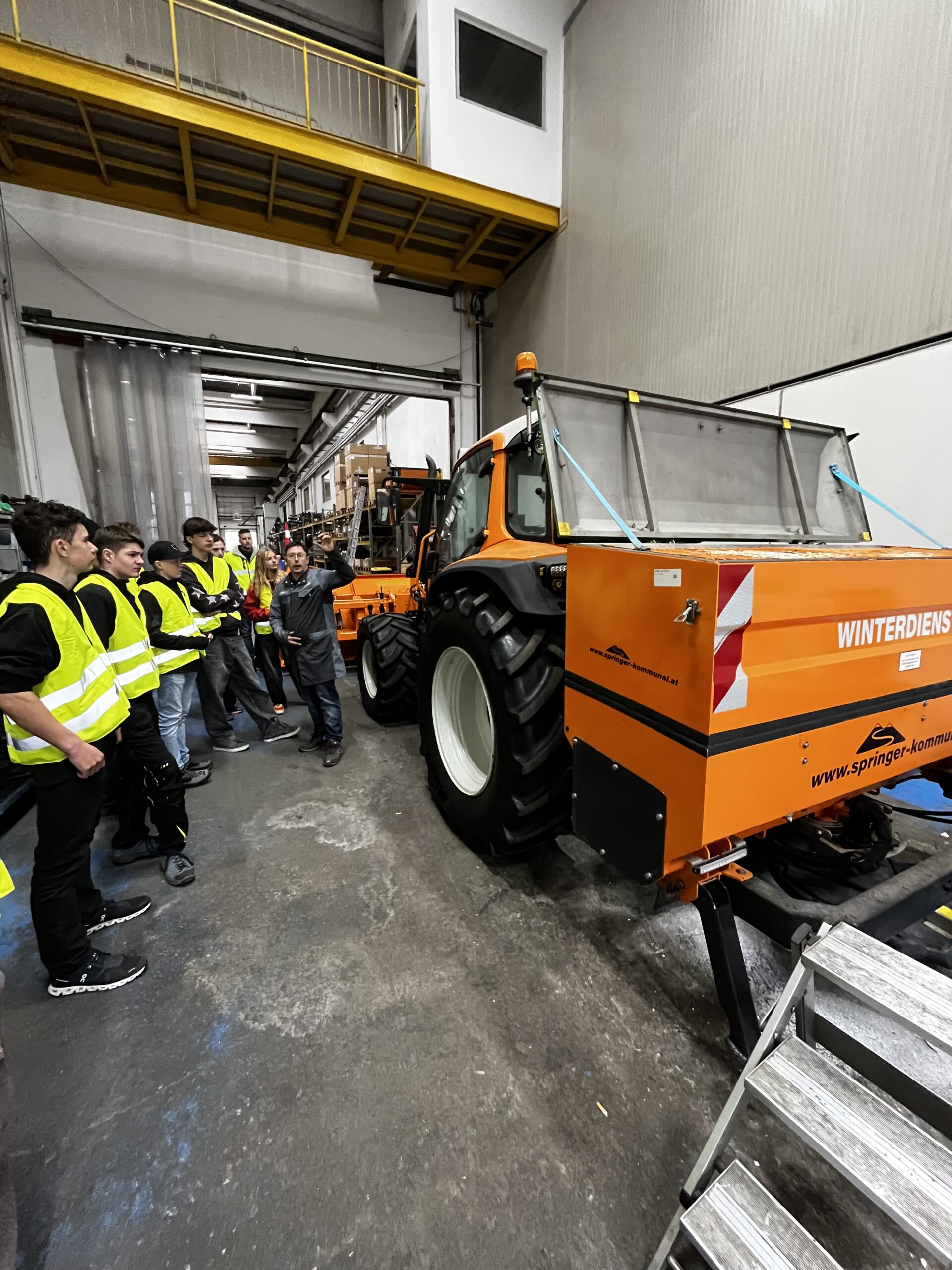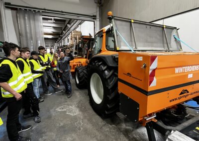 Die erste Station führte die Klasse zur Firma Springer Kommunaltechnik in Lainach. Dort erhielten die Schüler:innen spannende Einblicke in die Produktion von kommunalen Geräten, von denen jährlich rund 400 Stück hergestellt werden. Der Betrieb beschäftigt etwa 50 Mitarbeiter, darunter rund 15 Lehrlinge, die in drei verschiedenen Lehrberufen ausgebildet werden. Neben Kommunaltechnik werden auch Teile für Sägewerke produziert. Besonders beeindruckend war, dass die Firma weltweit tätig ist.