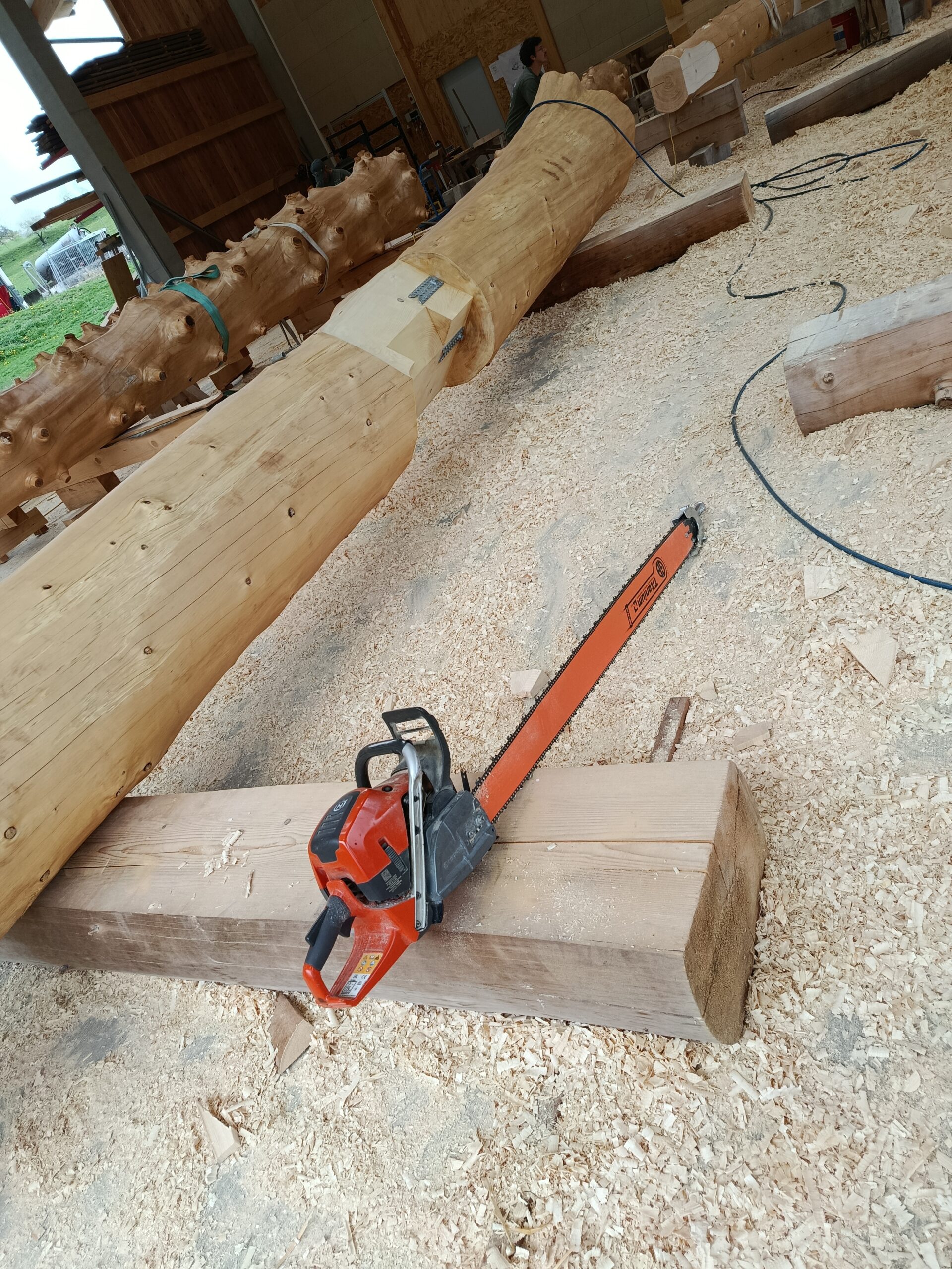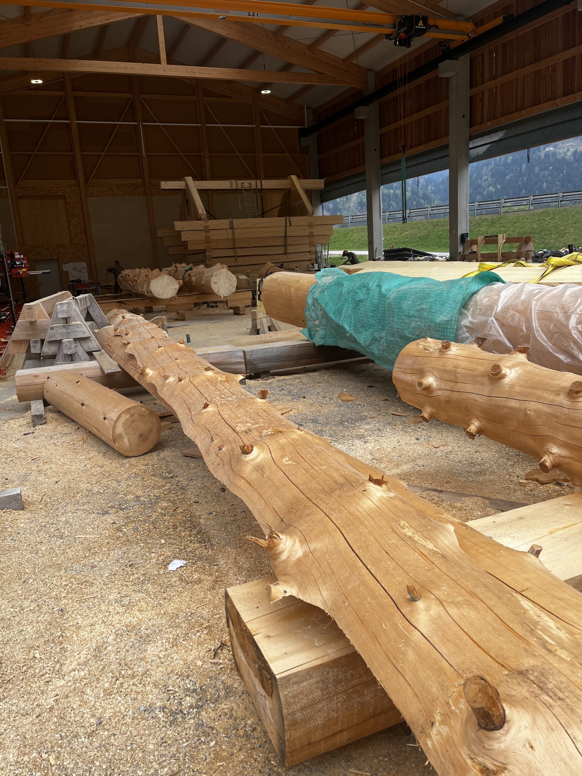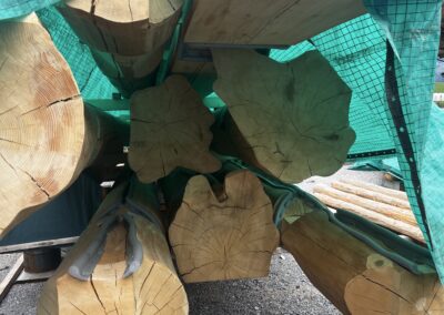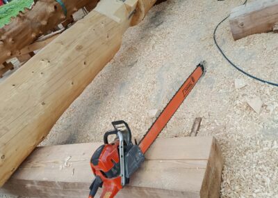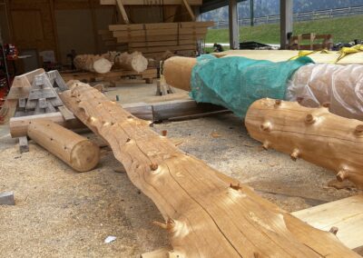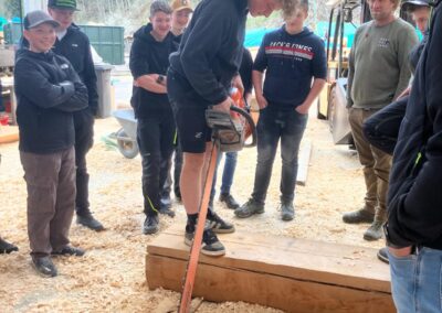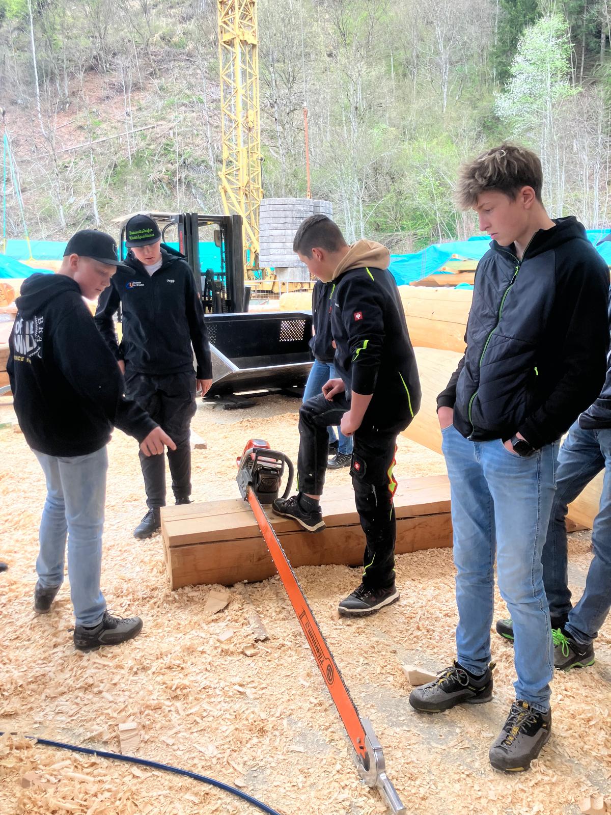 Den Abschluss der Exkursion bildete ein Besuch bei einem Betrieb für Rundholzhäuser. Dort wurde den Schüler:innen gezeigt, wie mit speziellen Werkzeugen – darunter eine Motorsäge mit einem bis zu zwei Meter langen Schwert – gearbeitet wird. Der Betrieb hat bereits rund 100 Rundholzhäuser errichtet, unter anderem auch in Dresden und Hannover. Das verwendete Holz, hauptsächlich Fichte und Tanne, stammt überwiegend aus Kärnten. Der Familienbetrieb wird heute erfolgreich in zweiter Generation geführt.